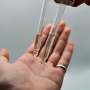 • Toma 2-3 gotas de cada uno suero y mézclalas con un dedo, para así formar tu propia crema facial. Aplícala en tu rostro.